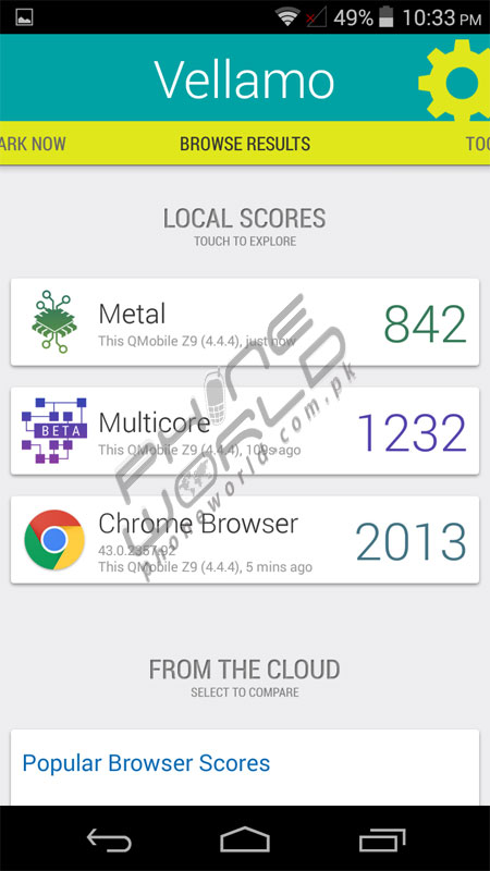 - For its browser’s bench mark, QMobile Noir Z9 makes a total of 2013 which is best for the mid-range smartphones.